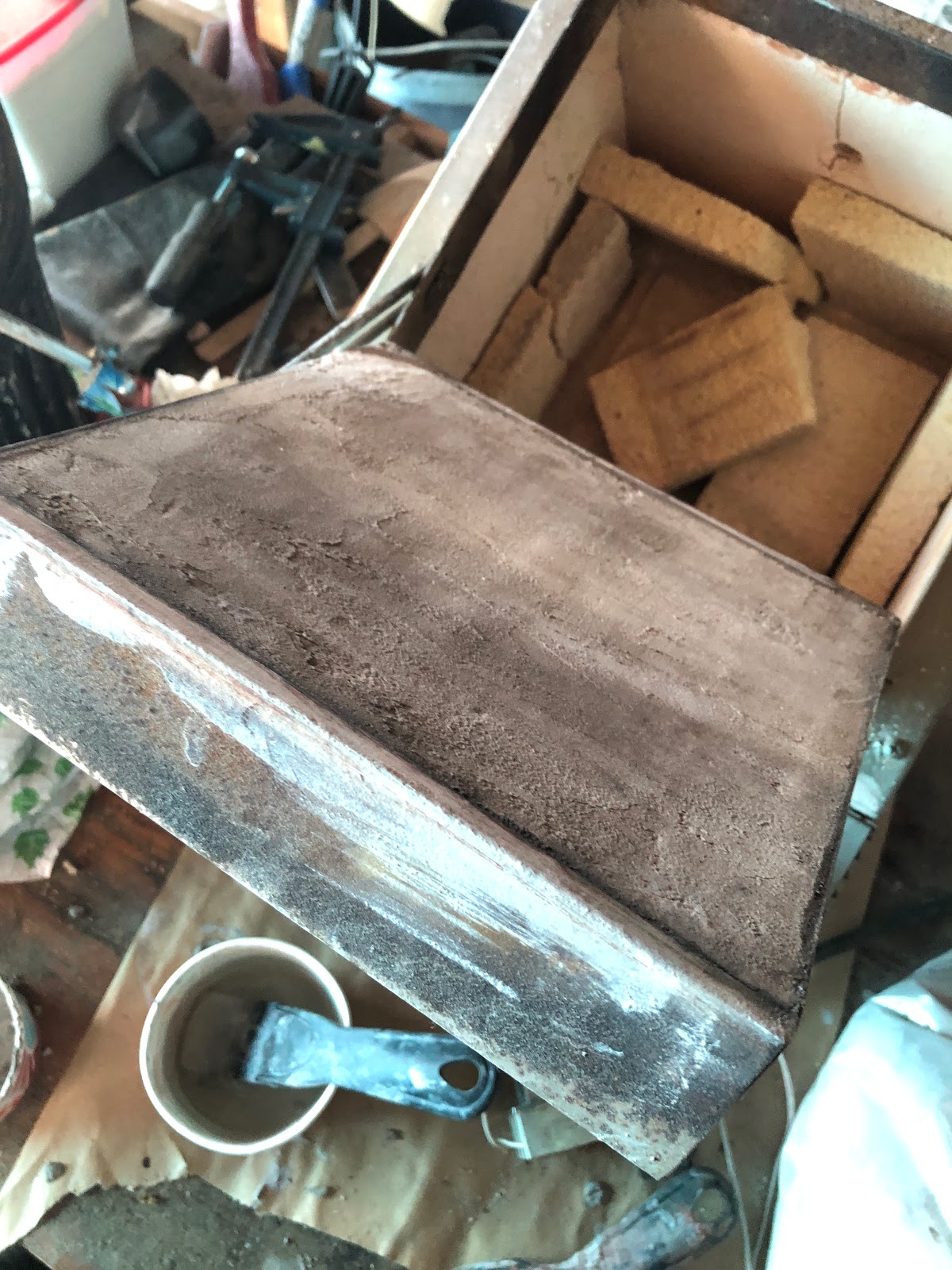I took one of the broken bricks from the side of the oven and encased it in satanite. The form is covered with packing tape.